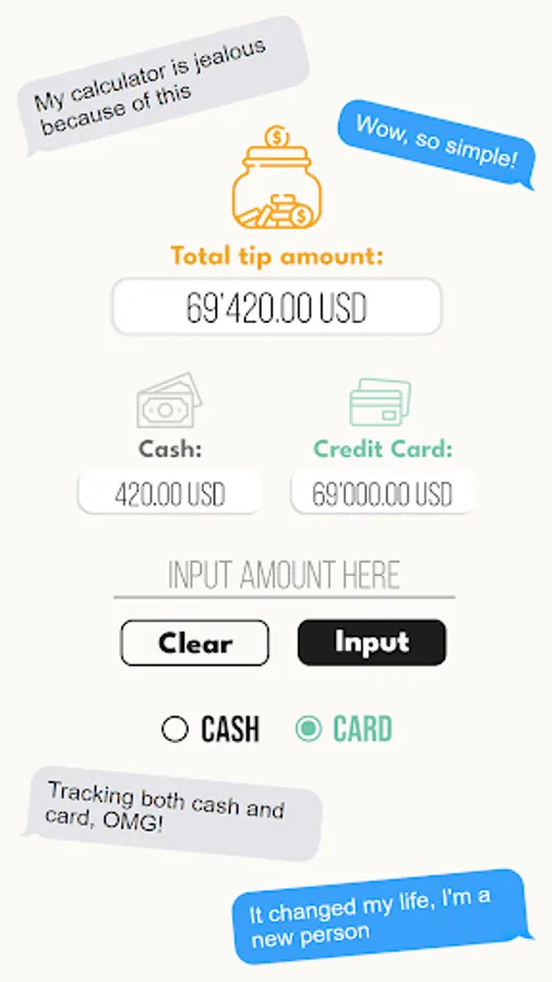 and brought you a simple app for tracking and counting your tips – both in cash and card.