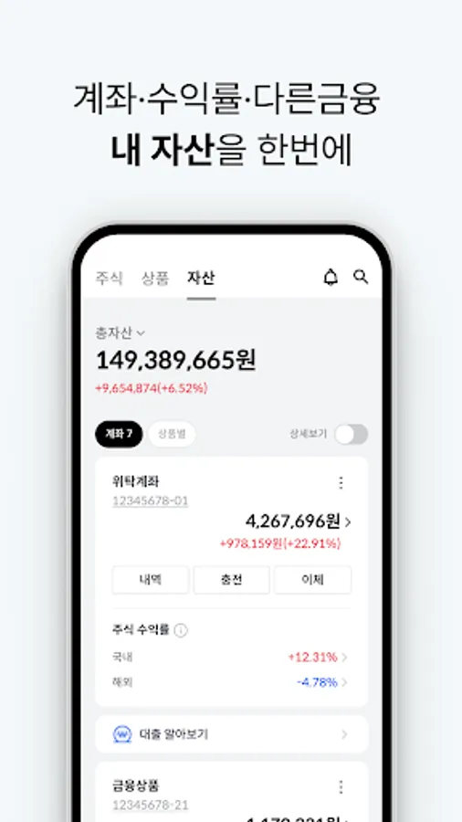 • Instantly check customized information such as items of interest, asset changes, dividends and product maturity schedules.
