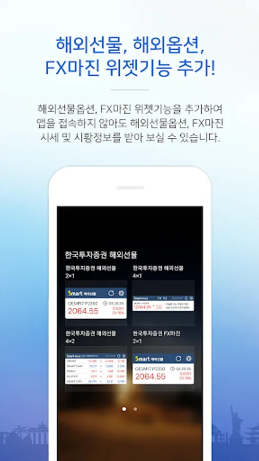 - By adding the overseas futures option and FX margin widget function, you can receive overseas futures options, FX margin market price and market information without accessing the app.
