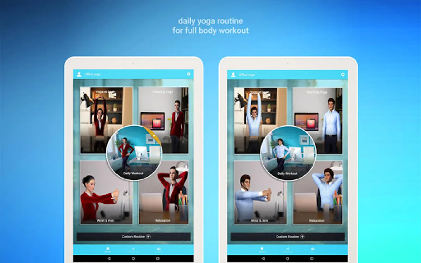 * ROUTINES FOR DAILY WORKOUT: Daily yoga and exercise program tailored for all age groups. Routine includes yoga poses and exercise suggested by experienced yoga instructors and target full-body workout.