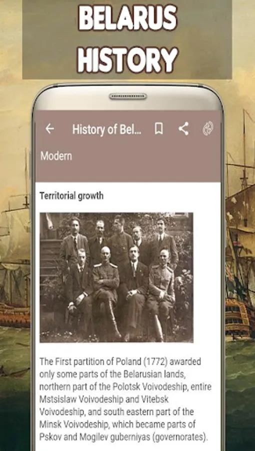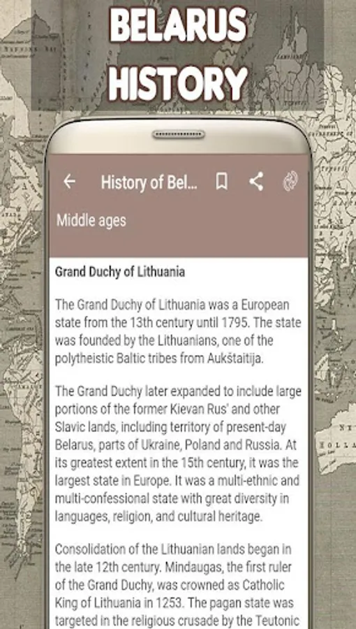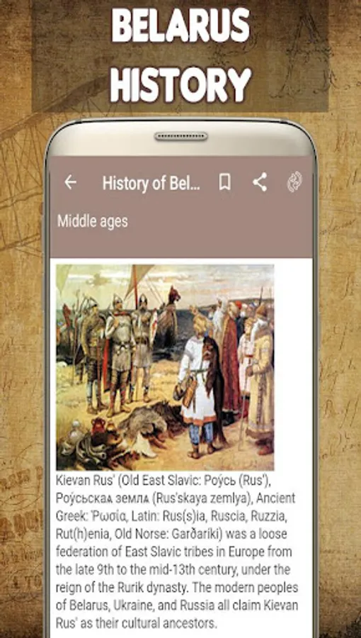 Beautiful “History of Belarus” for all citizens of Belarus! – ancient Belarus history with Graphics - Popular Top “Belarus history” Free Download! This is a whole app is very easy to use. The app cover whole Belarus history from Kievan Rus' to Modern Belarus.