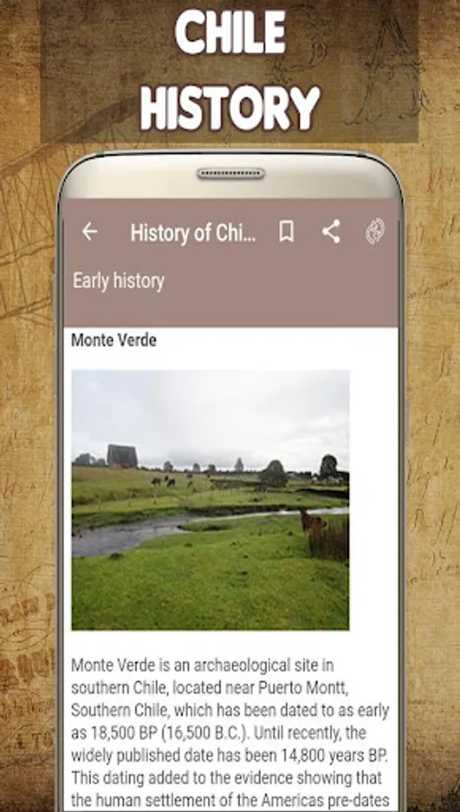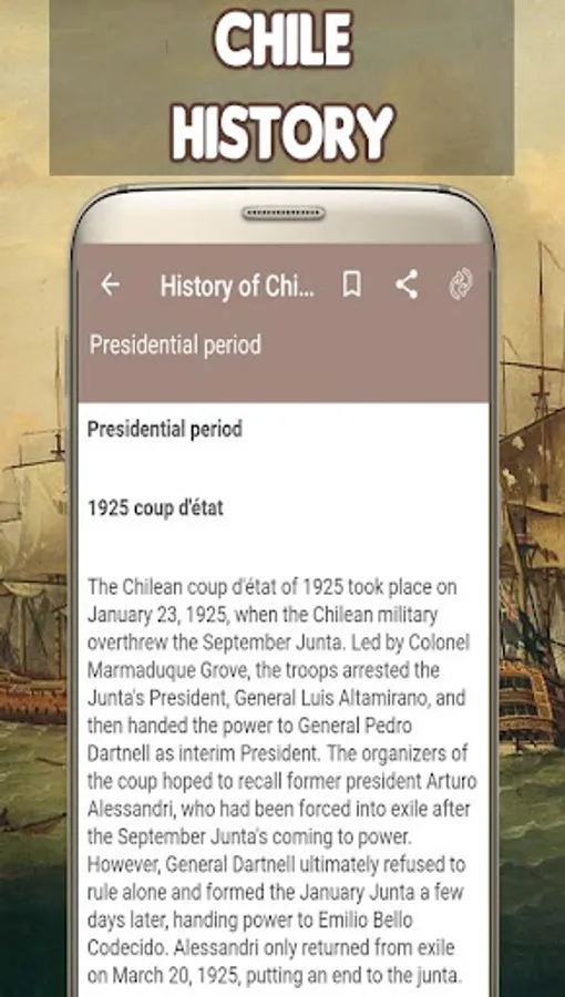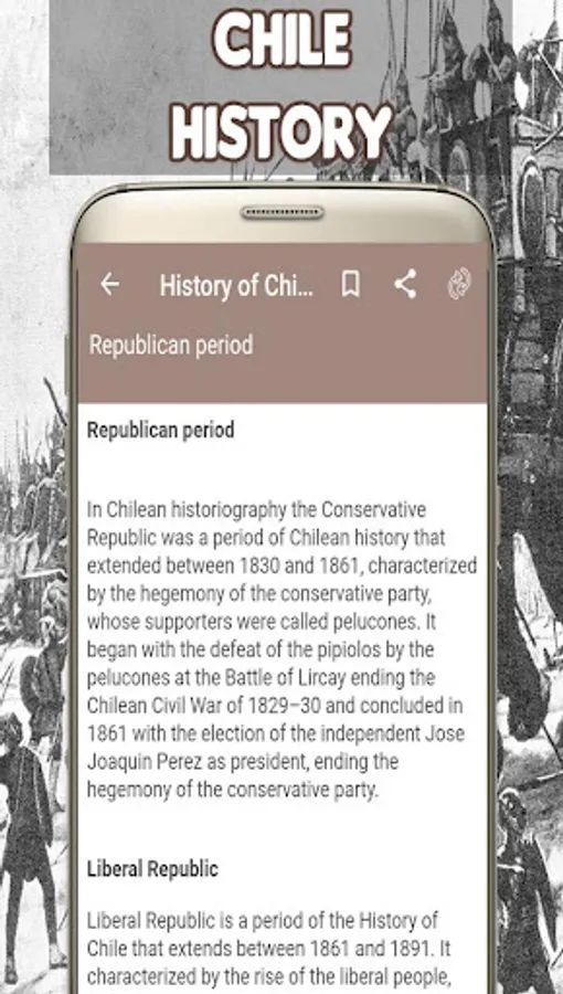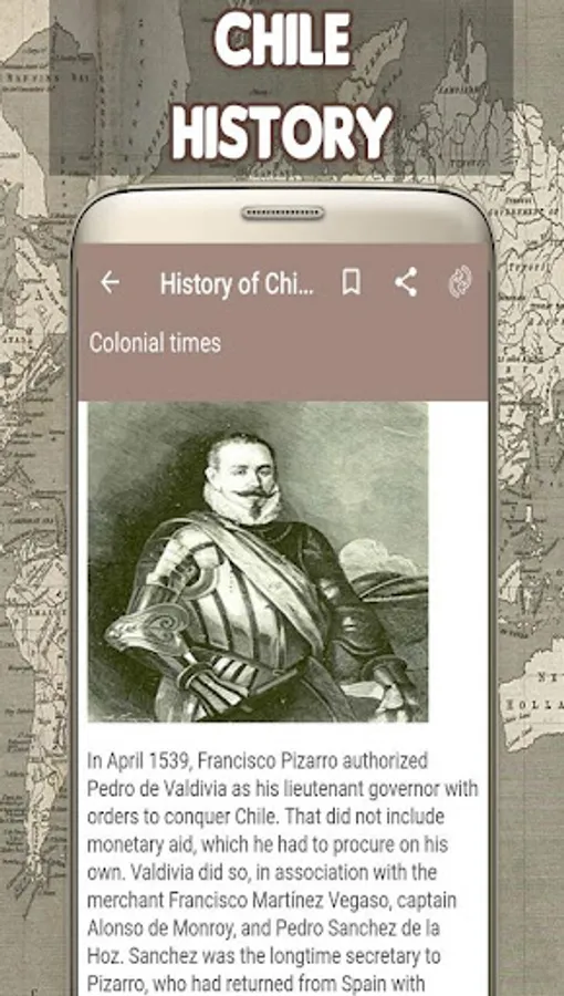 with the History of Chile. You can even select to view or browse or zoom whole content. We are sure that this app is better than other “Chile History” app.