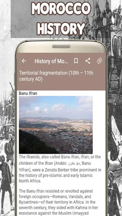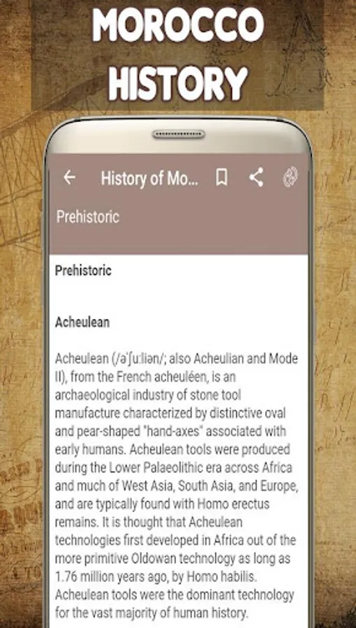 Beautiful "History of Morocco" for all citizens of Morocco! – ancient Morocco history with Graphics - Popular Top "Morocco history" Free Download! This is a whole app is very easy to use. The app cover whole history of Morocco from Prehistoric to Western Sahara conflict.