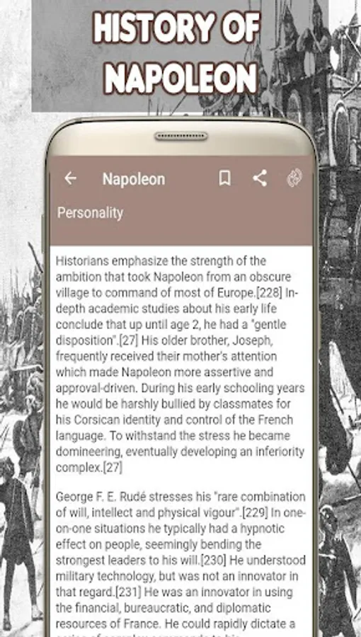 This app has a feature to mark any history page as bookmark with the History of Napoleon. You can even select to view or browse or zoom whole content. We are sure that this app is better than other “Napoleon biography” app.