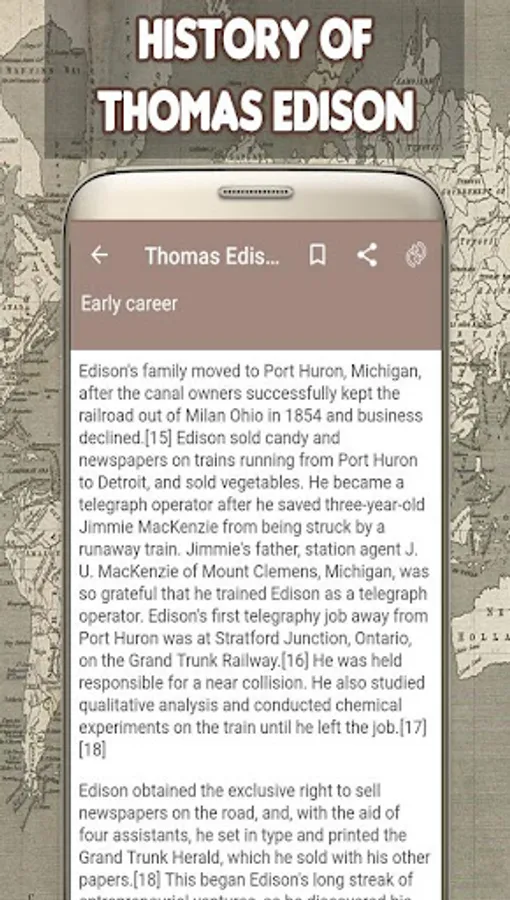 This app has a feature to mark any history page as bookmark with the History of Thomas Edison. You can even select to view or browse or zoom whole content. We are sure that this app is better than other “Thomas Edison biography” app.