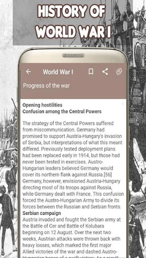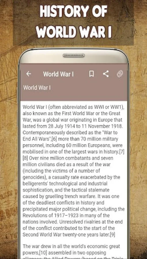 This app has a feature to mark any history page as bookmark with the History of World War I. You can even select to view or browse or zoom whole content. We are sure that this app is better than other “World War I History” app.