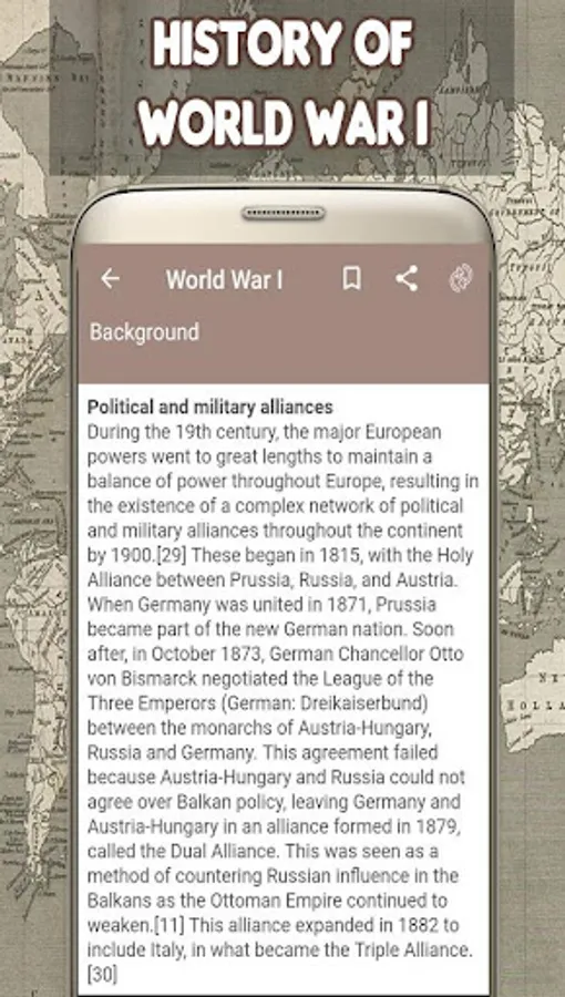 Beautiful “History of World War I" for all citizens of World War I! – ancient World War I history with Graphics - Popular Top "World War I history" Free Download! This is a whole app is very easy to use. The app cover whole topics related to World War I timeline, World War I facts, and Germany history.