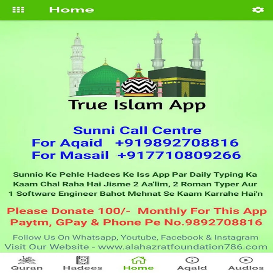 True Islam Contains Hadees Shareef With Tarjuma, Quran Shareef With Tarjuma And Sunni Aqaid Details With Explanation In Roman.