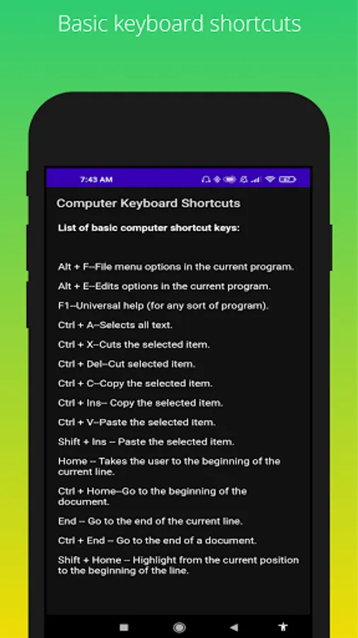 Using keyboard shortcuts can greatly increase your productivity, reduce repetitive strain, and help keep you focused. For example, to copy text, you can highlight text and press the Ctrl+C shortcut. The shortcut is faster than moving your hands from the keyboard, highlighting with the mouse, right-clicking, selecting copy, and returning to the keyboard.