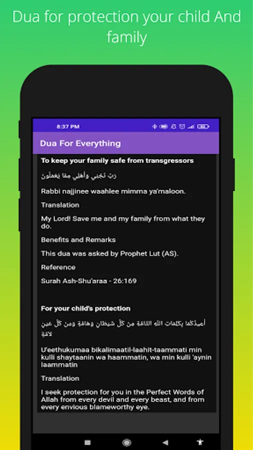 Dua For Everything it's one of the best apps for learning Dua in English And Arabic Dua with Reference Dua For All Problems Available In This App