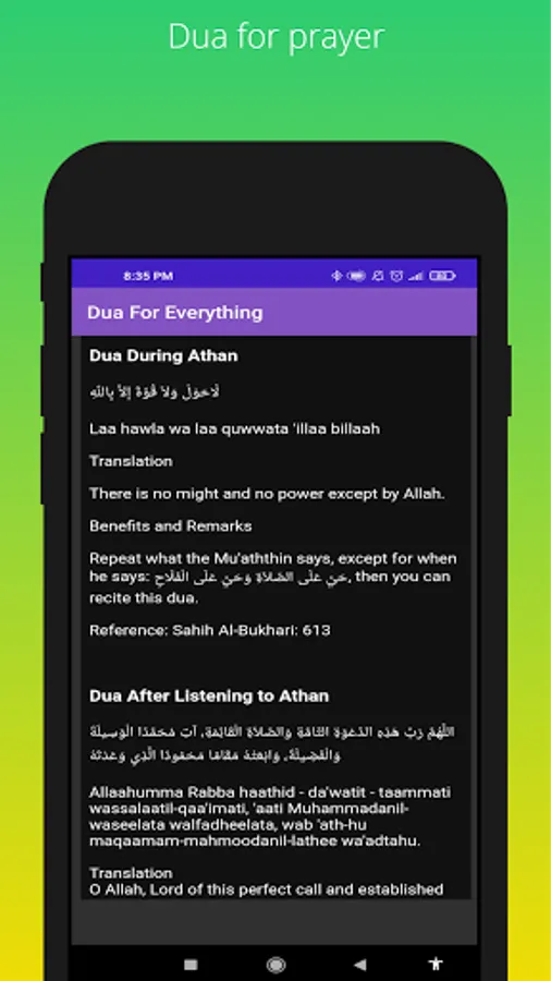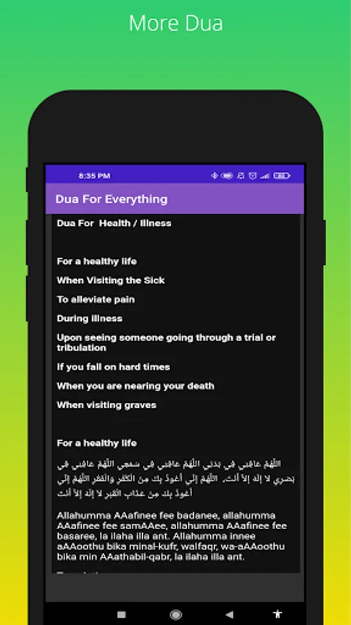 Dua For All Problems Dua For Everything it's one of the best apps for learning Dua in English And Arabic Dua with sahih hadith Reference Insha Allah you will find all the Duas in the App correct because all the Dua in these App has sahih hadith references. If you can recite the Dua in Arabic then it is best and if you do not know Arabic then recite it in English