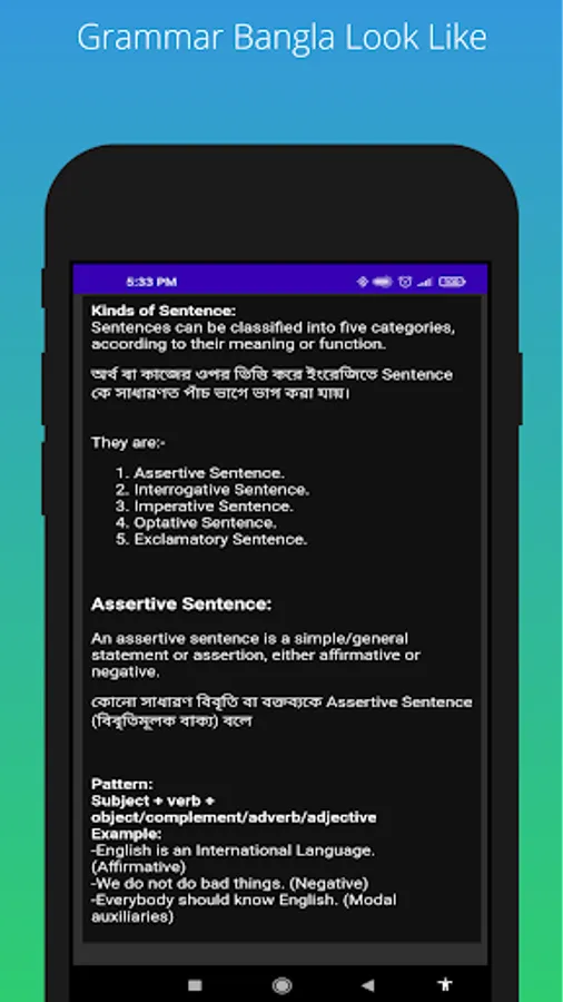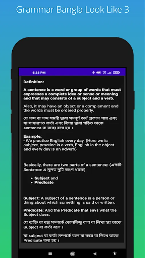 Grammar Bangla গ্রামার ইংলিশ গ্রামার বাংলা মোবাইল অ্যাপ আপনাকে সহজে ইংলিশ গ্রামার শিখতে সাহায্য করবে | Grammar Bangla mobile app will help you to learn English grammar easily