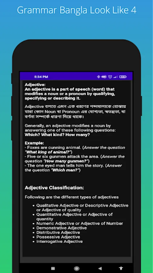Hopefully, this application will be very good for those who want to learn English grammar very easily. You can try it. It is very easy to learn English grammar so that everyone can learn English grammar very easily and also the rules are given in Bengali.