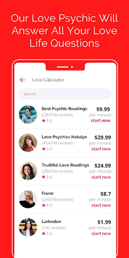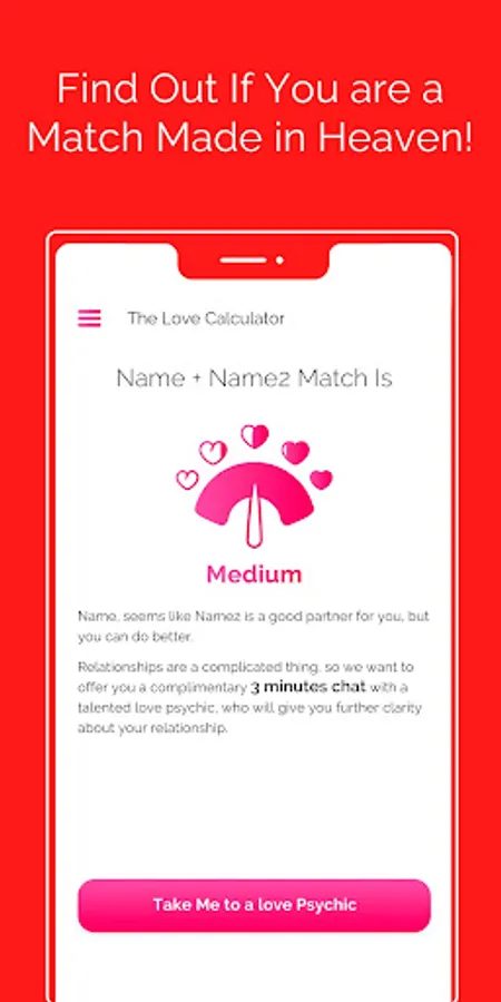 Download the Love Calculator app and get 3 free minutes with a love psychic reader!