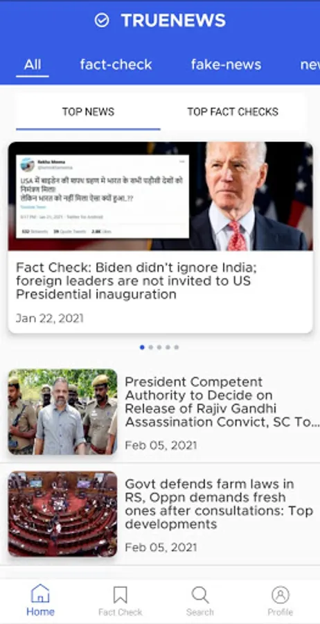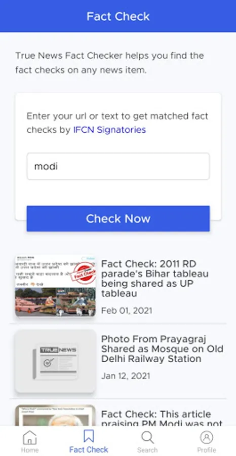 You can see the latest news, fact checks and also see if any news link or text has been fact-checked by IFCN signatories or not.