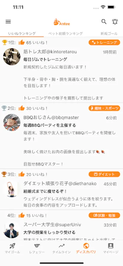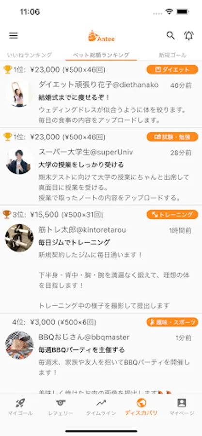 By following each other, you can see the goals and progress of other users. In addition, having a close friend act as a referee (monitoring role) will further increase your motivation.