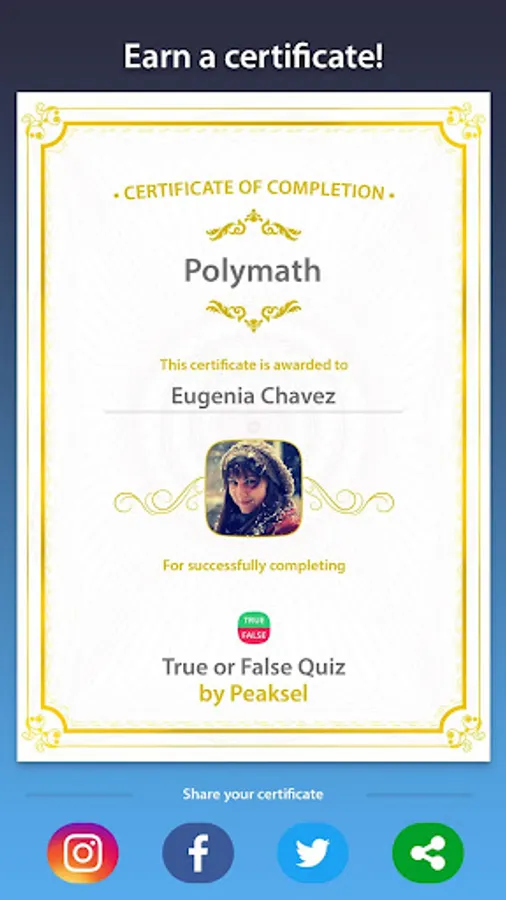 🏆 CERTIFICATE - you get it once you answer all true or false trivia questions and answers