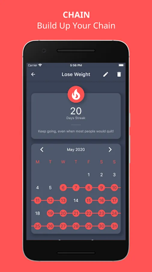 If you break the chain you lose your momentum. There is no going back. You will have to restart from day 1. So don't break the chain!