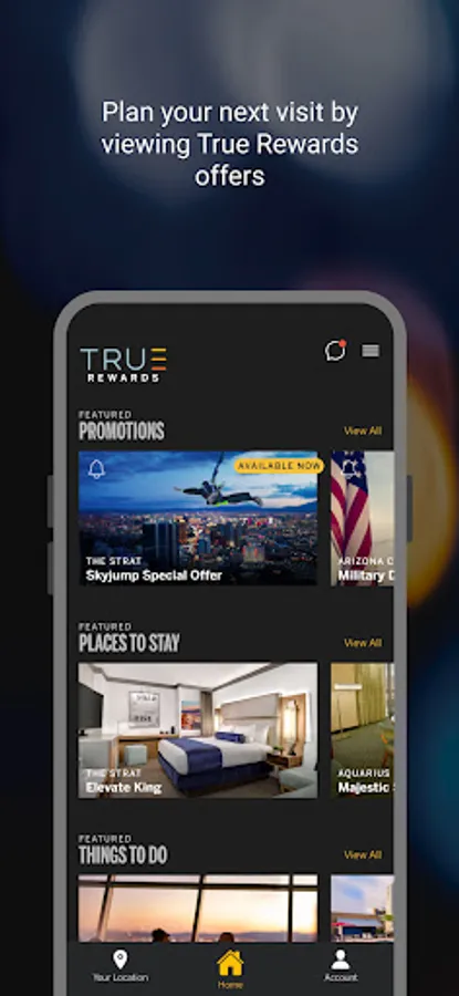 The official mobile app for the True Rewards loyalty program – giving you insider access to the best of Golden Entertainment at our 140+ locations – including: