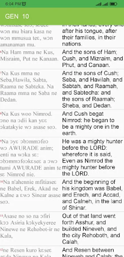 Small and simple to use Asante Twi Bible and English all in one. Complete holy bible(Nkwa Asem) in Twi and English language that connects with you. You can read both Twi and English side by side, top down.