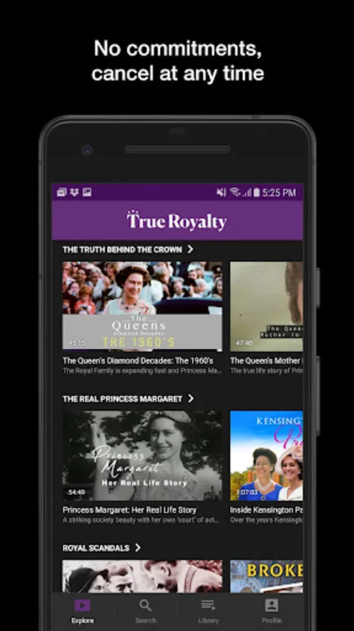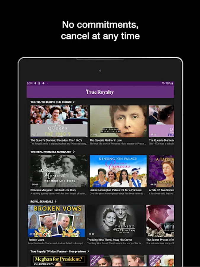 To access all features and content you can subscribe to True Royalty TV on a monthly or yearly basis with an auto-renewing subscription right inside the app.* Pricing can vary by region and will be confirmed before purchase in the app. In app subscriptions will automatically renew at the end of their cycle.