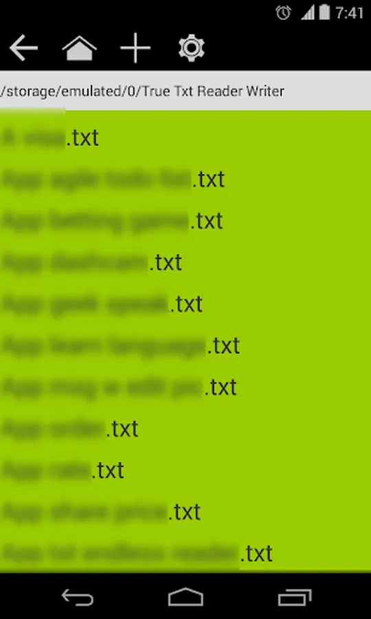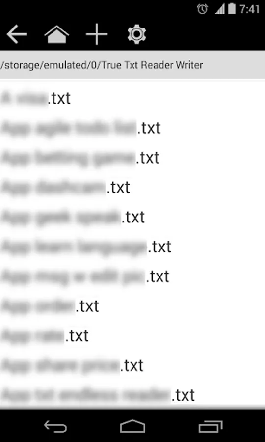 1. Place your .TXT files in the app directory on your phone. The app directory is named "True Txt Reader Writer".