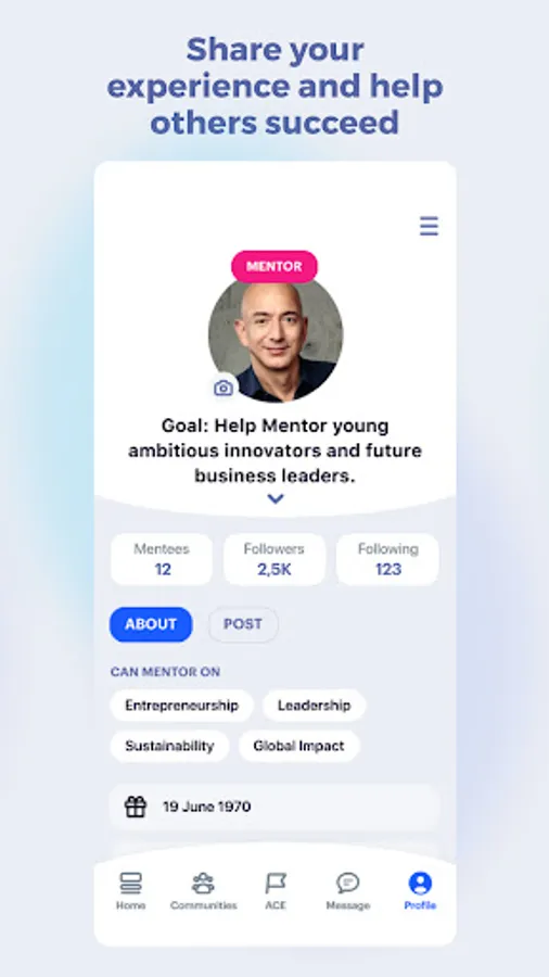 - Post and share stories with mentors & mentees and be inspired to achieve great things.