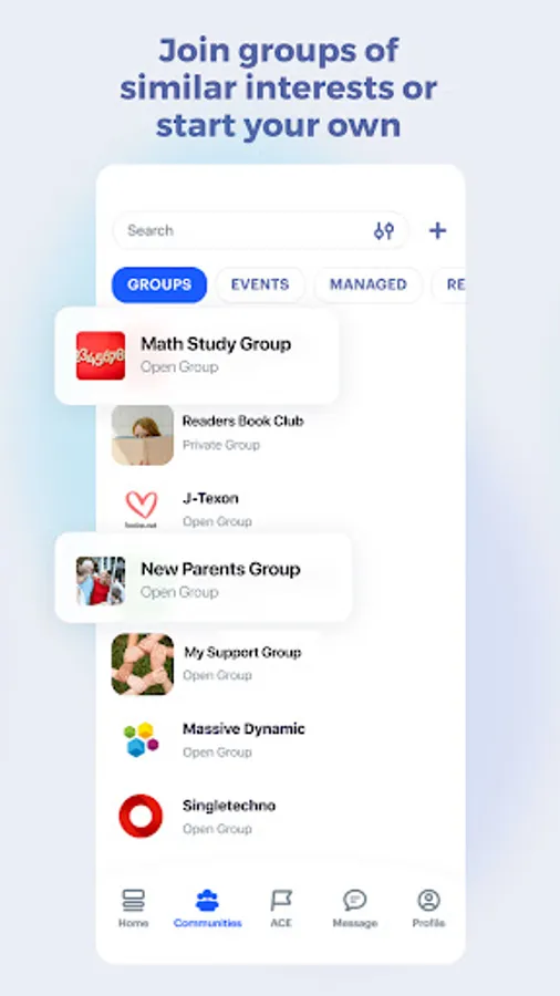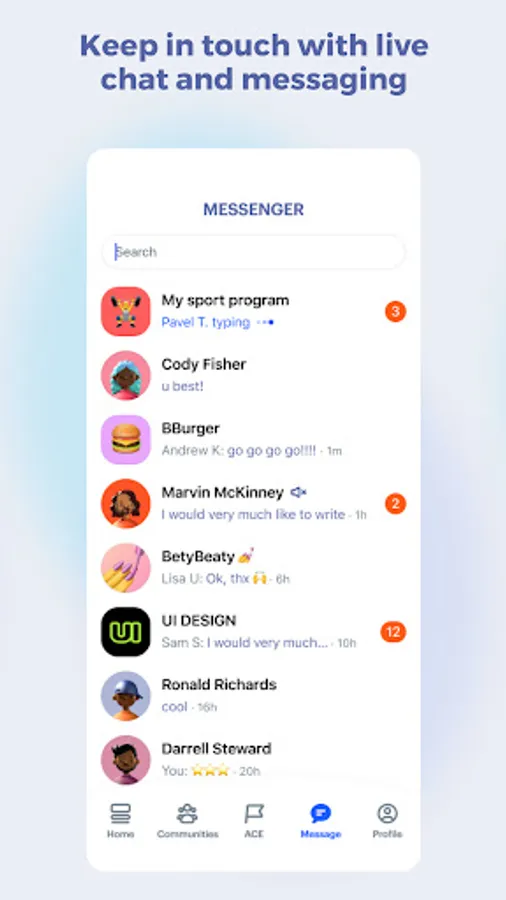 - Stay in touch with mentors, mentees, accountability buddies, friends and family through live messaging, or share your thoughts in Group chats.