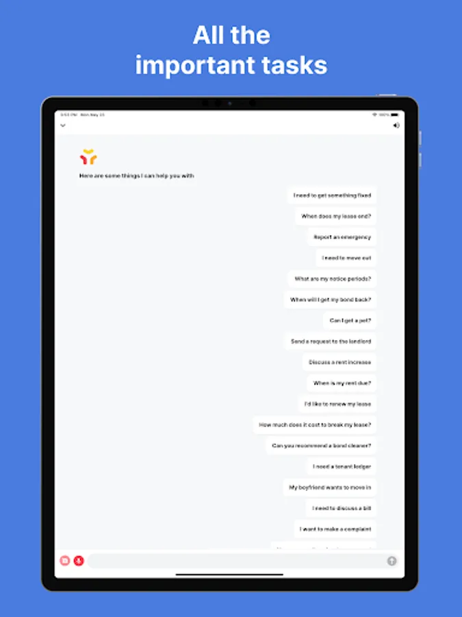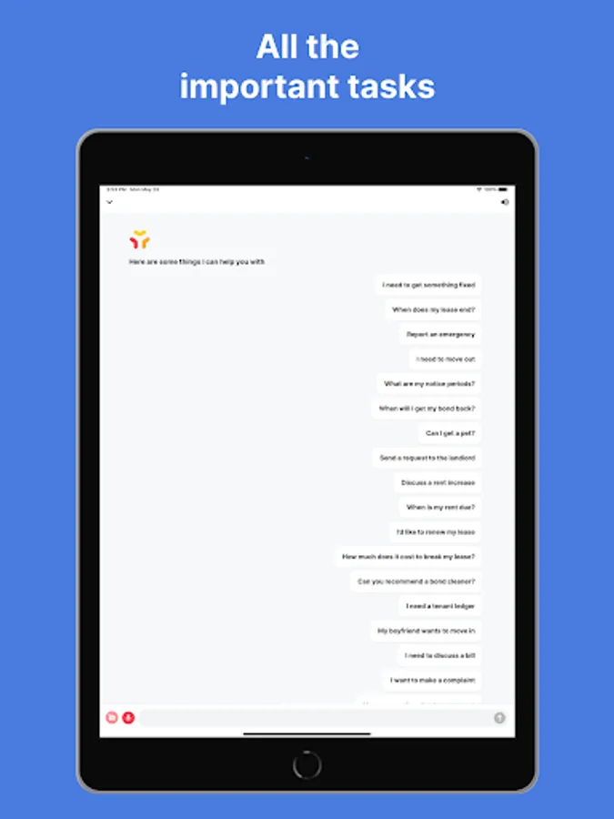 For common property management enquiries and tasks, she’s trained to respond instantly with relevant information to your location. You'll also have access to all the important information, reports, videos, images and documents relating to your tenancy.