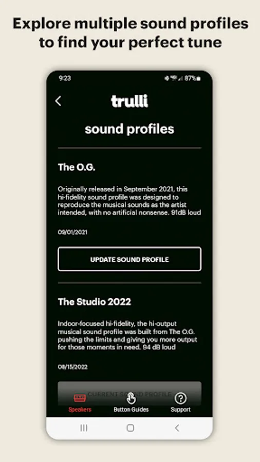 Descriptions for the sound profiles found in the Trulli app: