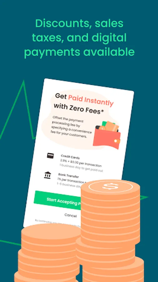 * Create free invoices from anywhere—send it before you leave the customer