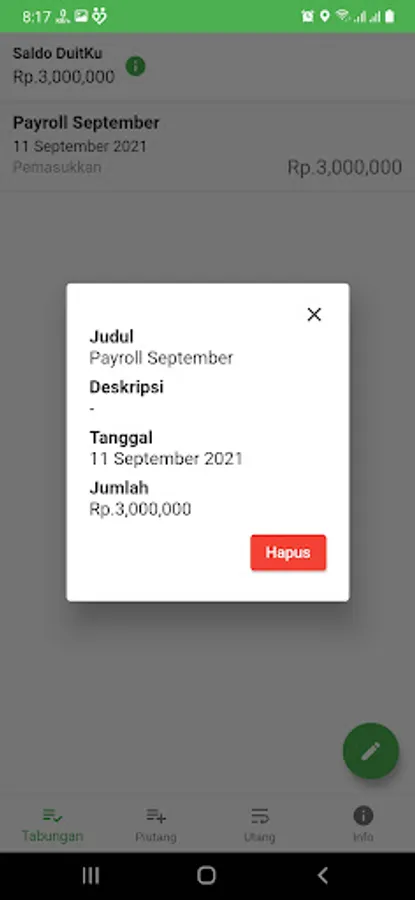 This application functions as a record of personal finances, both savings (incomings, expenses), receivables, and debts. Helping you to calculate your daily financial transactions.