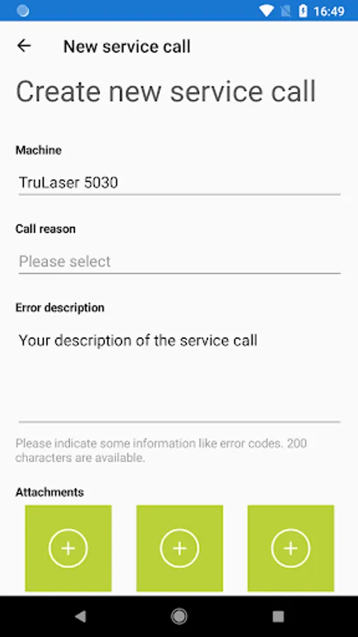 With the Service App TRUMPF now offers a practical alternative to the hotline of the Technical Service. Whether it comes to a technical problem, a spare part or a question for maintenance: in five easy steps, you create a service call. Simply select the affected machine and the message cause, add a description and photos and name a contact person for TRUMPF. Already, you can send the message around the clock to TRUMPF.
