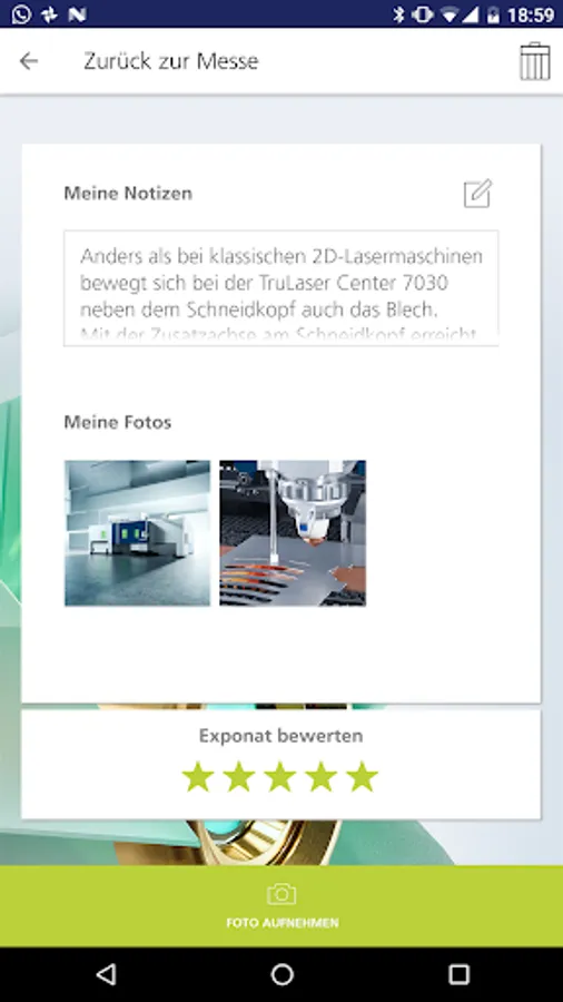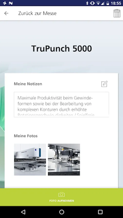 Information made simple: The TRUMPF ExpoGuide is your ideal companion for future trade fair visits. Use QR codes to keep track of the exhibits that are most interesting to you, record your impressions, images and evaluations of them, and conveniently download the information you have compiled as a PDF. Everything you need, all in a single app.