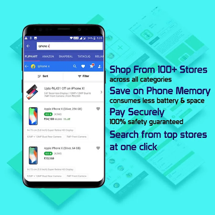 All in one Online Shopping app is a shopping destination for more than 500+ online stores. Some of the major online shopping sites Amazon, flipkart, Paytm, Snapdeal, Reliance digital, Shopclues, Myntra, Ebay, jabong, Moglix, olx, zivame, abof, Ajio,TataCliq and many more