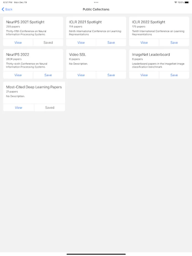 - Browse papers in public collections (groups of similar papers provided by our users)