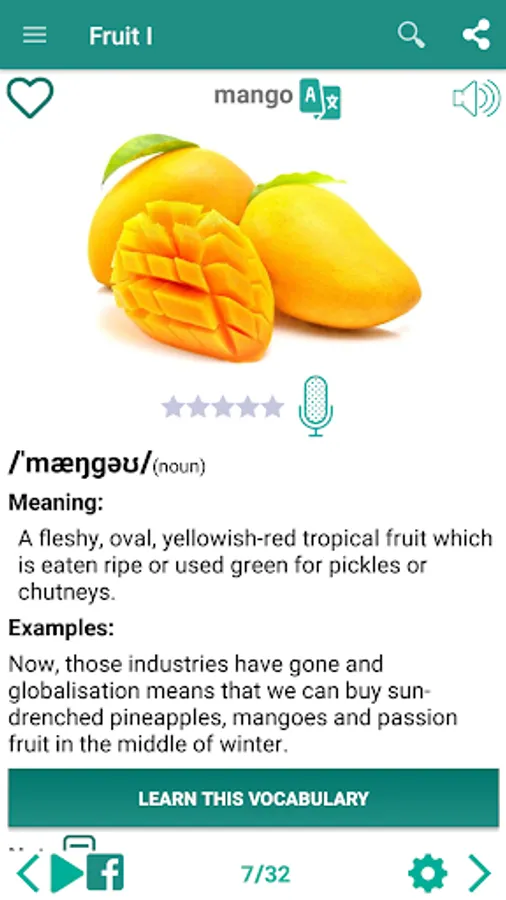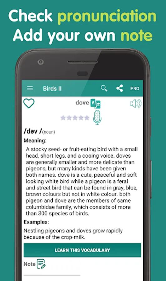 App provide dictionary for you to lookup and translate word into your mother language, you can test your vocabulary with the test function.