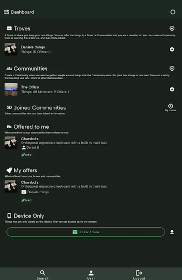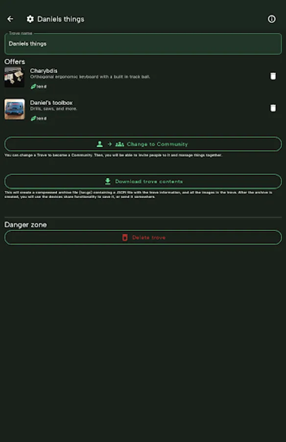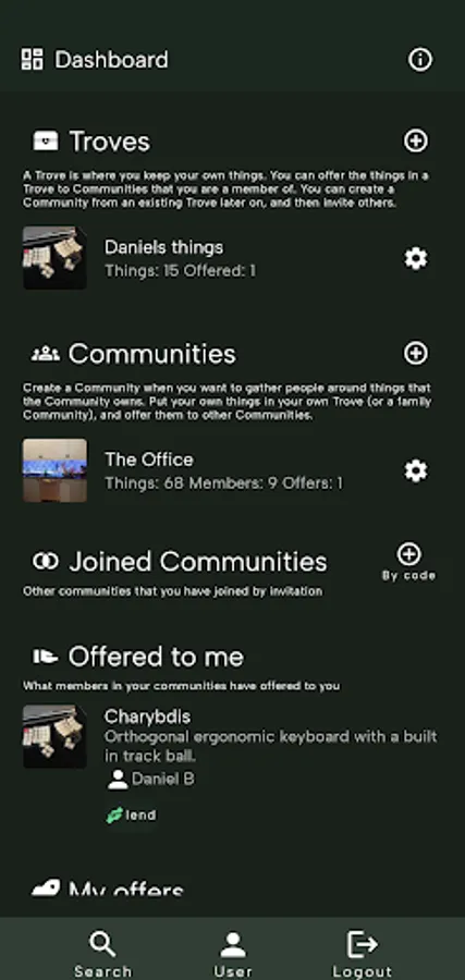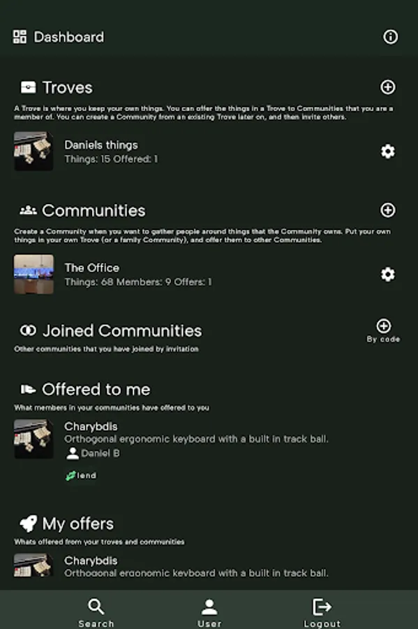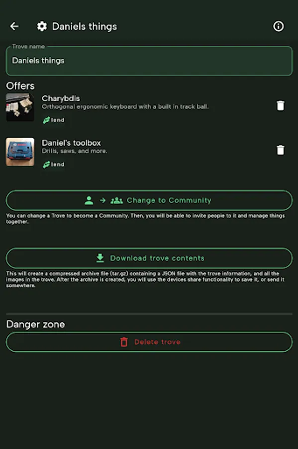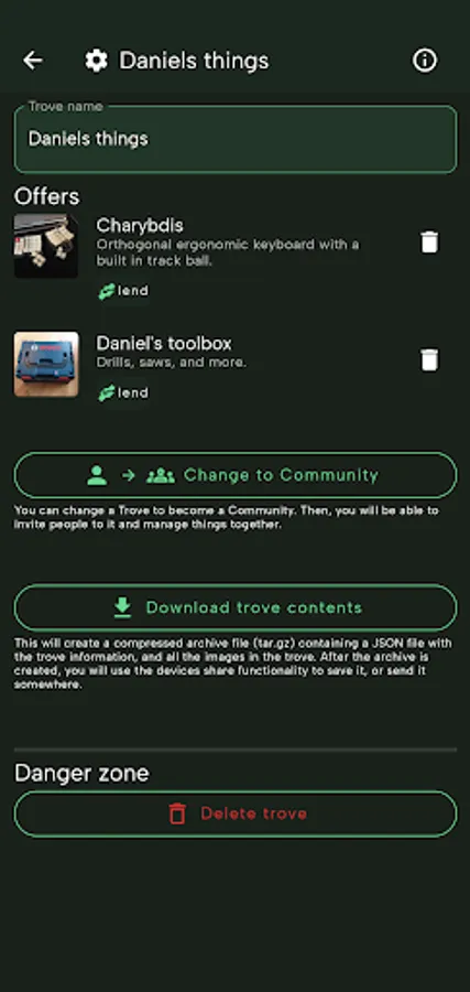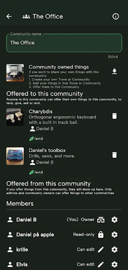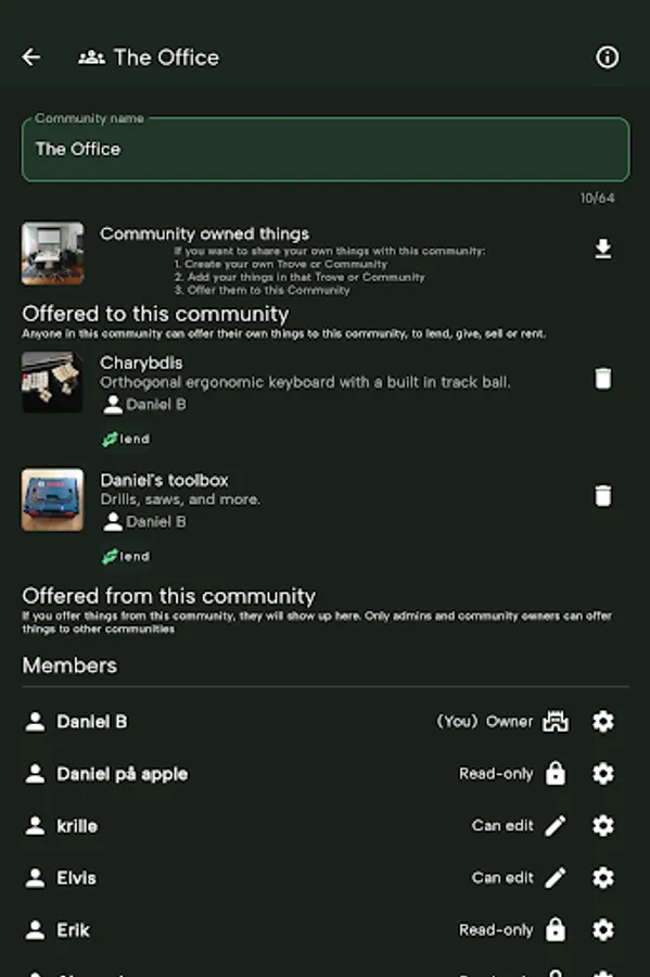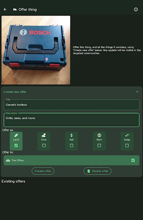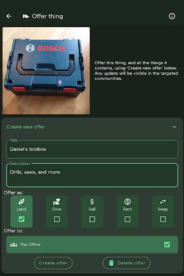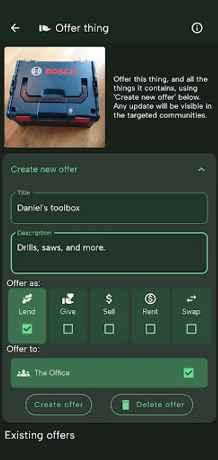 Offer your things to communities, to lend, give away, swap, sell, or rent.