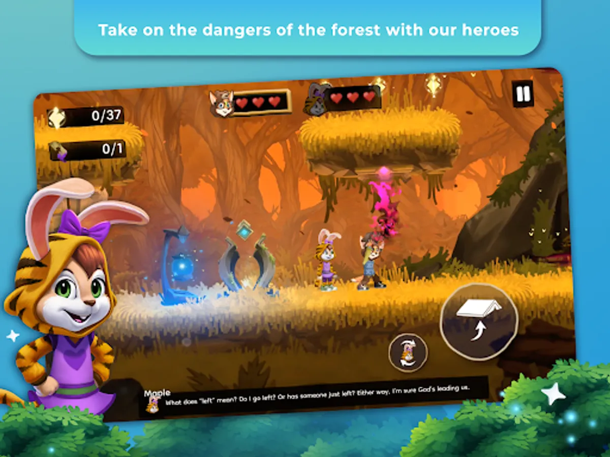 Maple and the Forest of Words - The Forest of Words needs help! Can Maple the daring tiger bunny and her friend, Oliver the biblical fox, save the meaning of words? Find out in this side scrolling, puzzle solving, action-adventure.