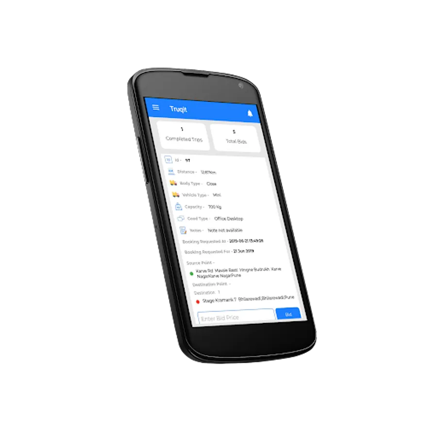 Truqit is an online logistics software application developed by Path Innovations Pvt Ltd as an initiative to support Intelligent Transportation System (ITS) in India. A state of the art mobile platform that synchronizes cargo transportation for transporters and their users in order to provide a smart, economical and on-time transportation of the goods.