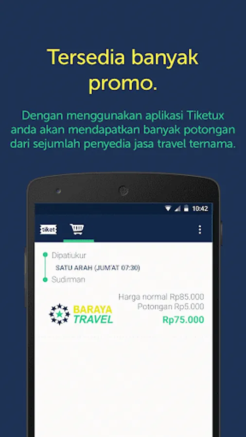 Baraya Travel is a travel shuttle that serves majors Bandung-Jakarta. This application is an online service that provides facility ticketing Baraya Travel tickets purchased online through the Android mobile applications.
