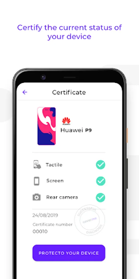 With this application you will get a certificate of the state of your phone totally free and in a couple of seconds you can insure your equipment in case of breakage or other accidental damage.