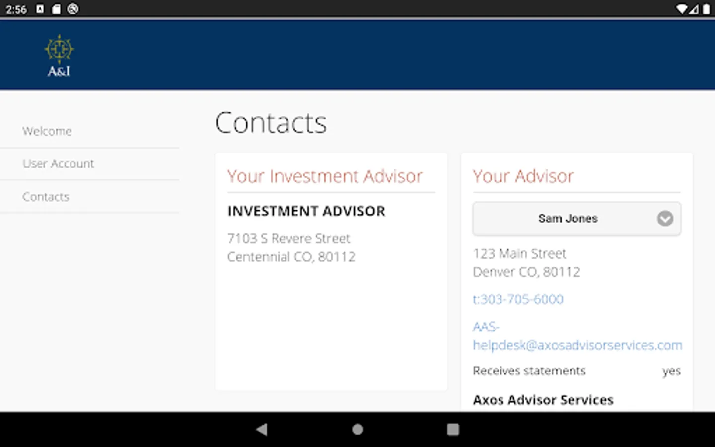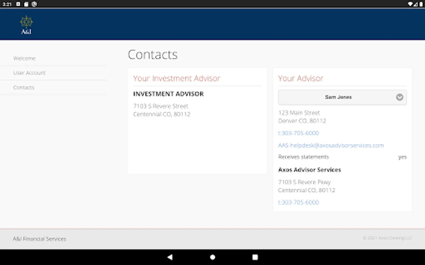 A & I Financial Services, LLC offers the Axos Clearing LLC 'Liberty' Application to authorized users.