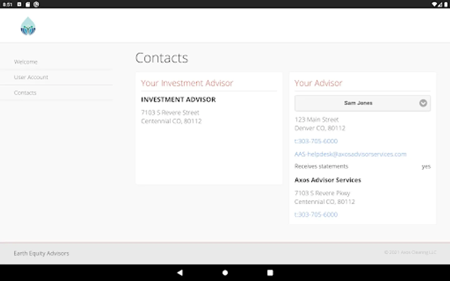 Earth Equity Advisors offers the Axos Clearing LLC 'Liberty' Application to authorized users.