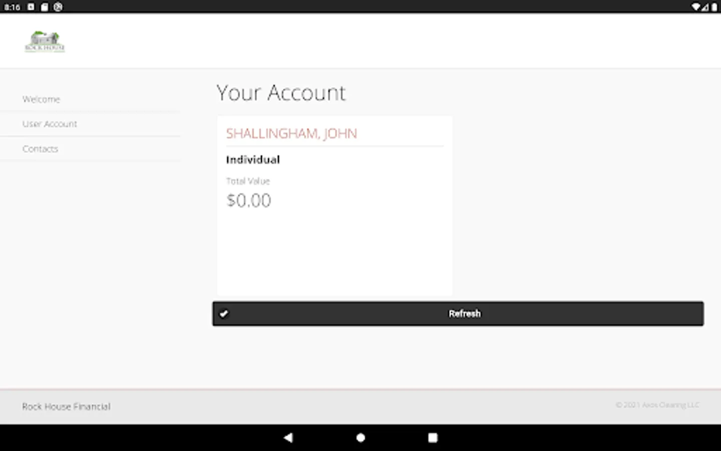 Rock House Financial offers the Axos Clearing LLC 'Liberty' Application to authorized users.