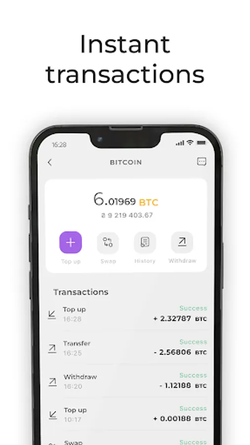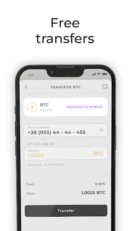 Transfer money, buy, sell cryptocurrency in just a few touches.
