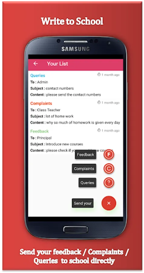 - Apply for Leaves, Send feedback/Queries/Complaints to school directly from app