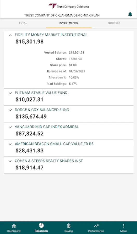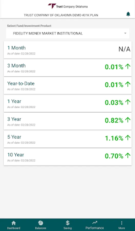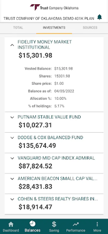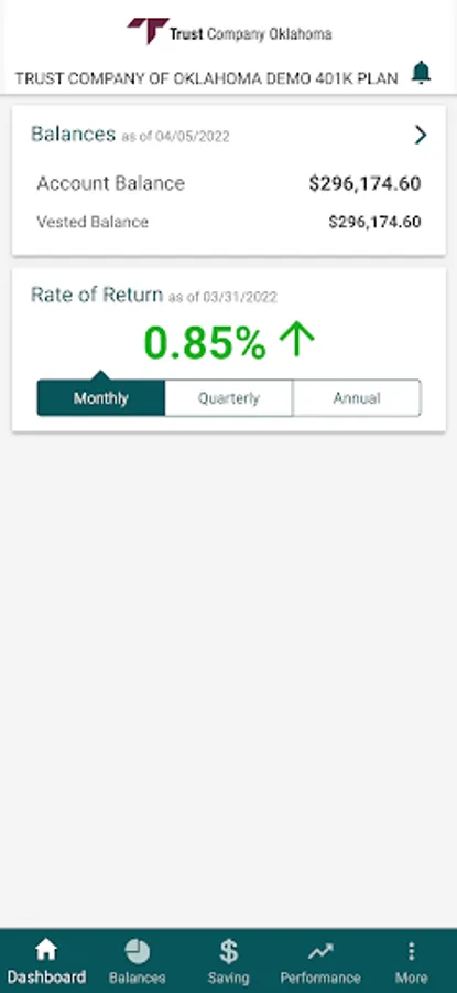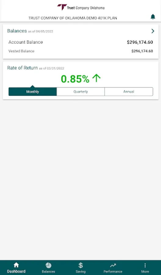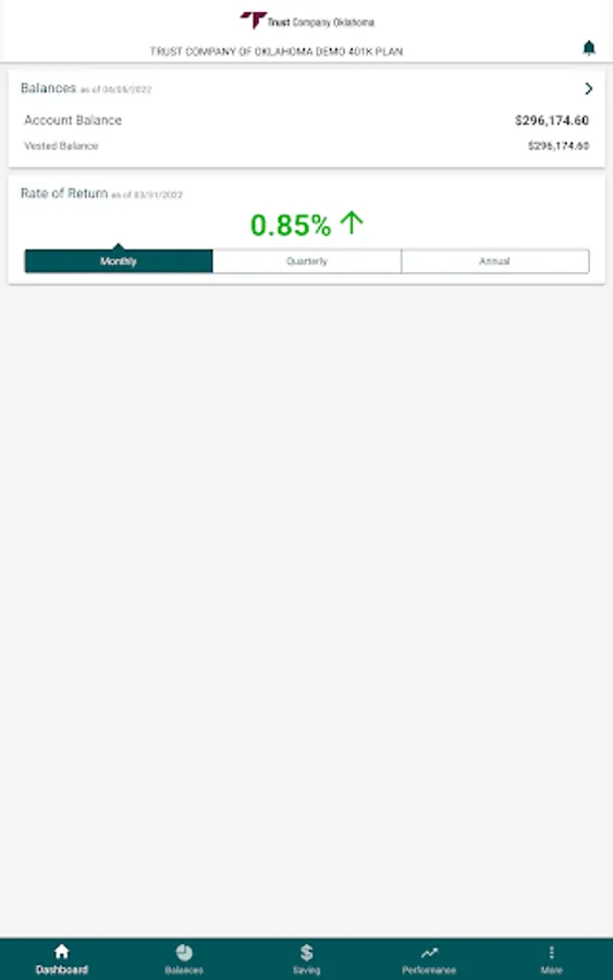 Review and manage your employer sponsored retirement plan account with Trust Company of Oklahoma. View account balance, transaction history, and investment performance.