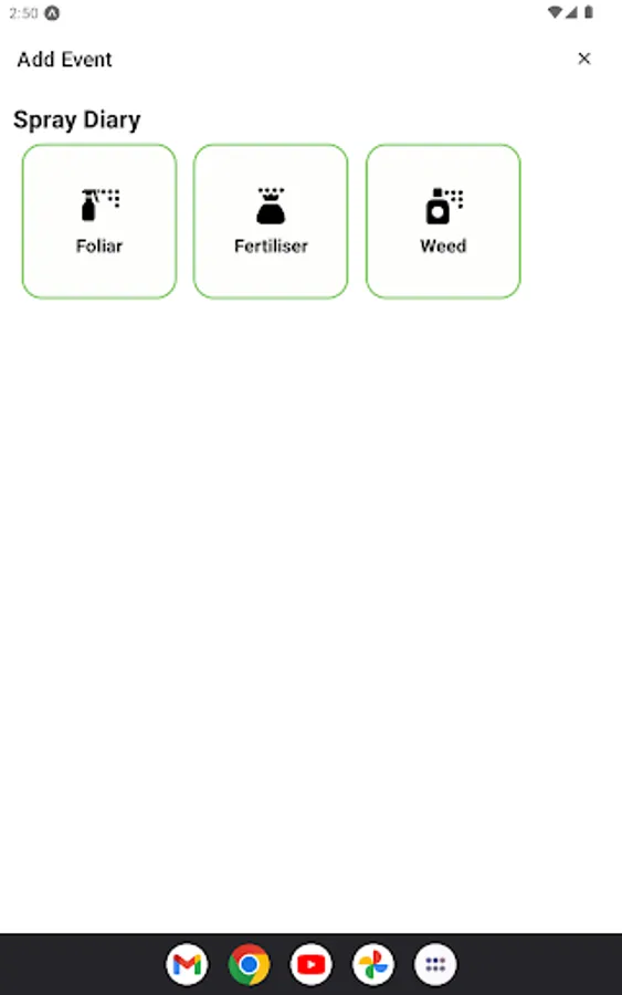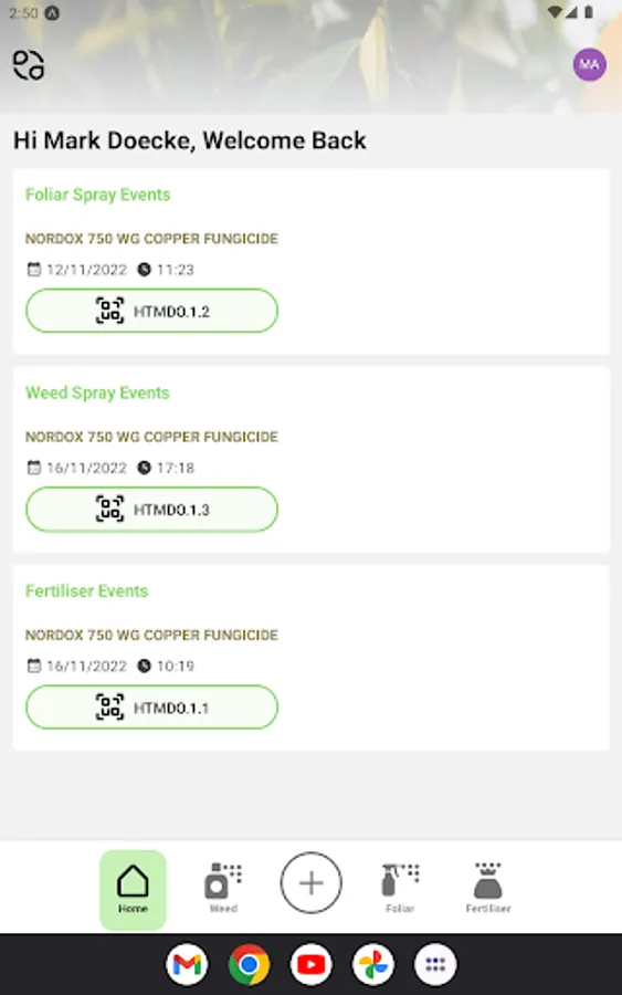 Record Critical Tracking Events such as foliar sprays, weed sprays, fertilizer applications and more!