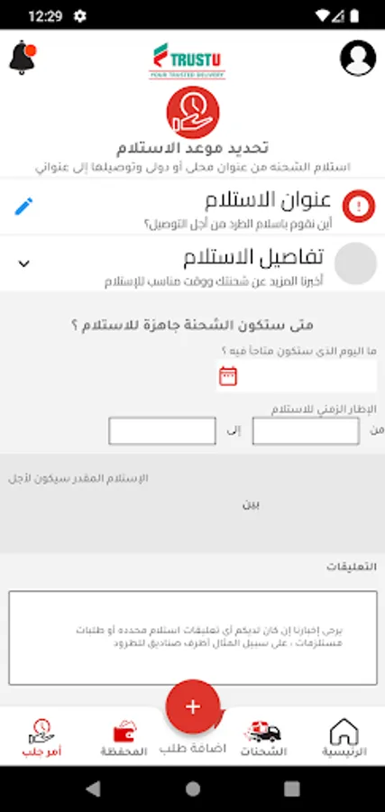 تطبيق خاص للعميل لمتابعة الشحنات و المعلومات المالية و إضافة الشحنات بكل سهولة و يسر